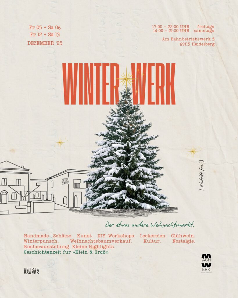 Wenn die Lichter im Innenhof des Betriebswerks aufleuchten und der Duft von Tannengrün und winterlichem Punsch in der Luft liegt, beginnt das Winterwerk – ein Weihnachtsmarkt, der sich anfühlt wie eine warme Decke an einem Wintertag. Ein einladender und stimmungsvoller Ort, an dem Augenblicke den Alltag für einen Moment weit wegrücken lassen.